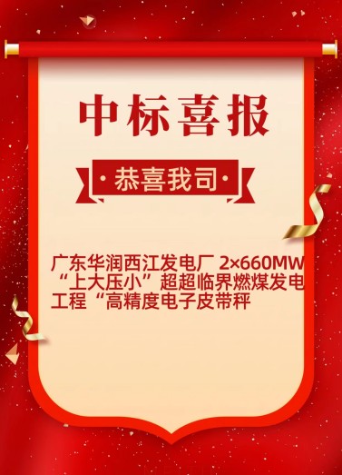 廣東華潤西江發(fā)電廠高精度電子皮帶秤中標喜報 |