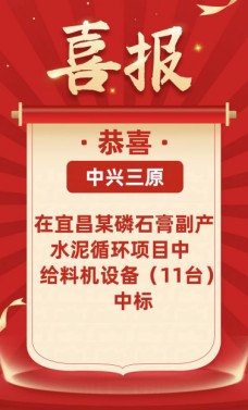 宜昌某公司磷石膏副產(chǎn)水泥循環(huán)項(xiàng)目給料機(jī) 中標(biāo)喜報(bào) |